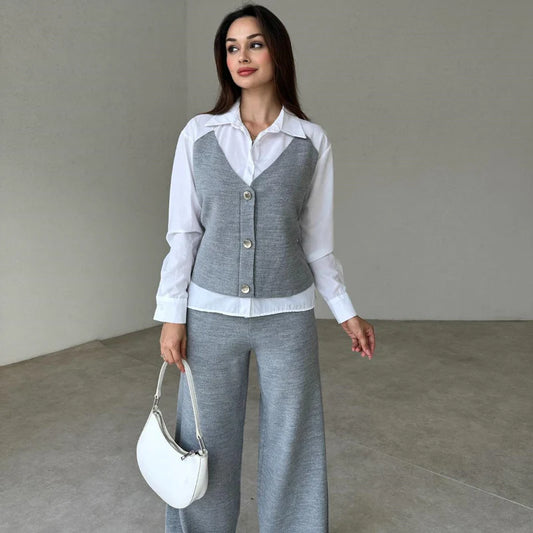 Women's Solid Color V-neck Top & Pants Two-piece Set