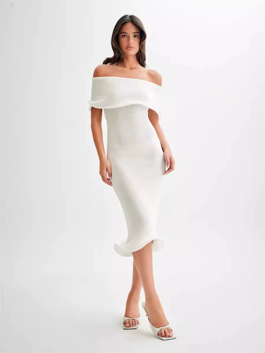This off-shoulder knit midi dress is the epitome of effortless elegance. This bodycon dress features a flattering off-the-shoulder design with an overlay that adds a touch of sophistication. A wire-corrugated hem adds a unique, stylish edge, and an unlined knit construction ensures a comfortable fit. This dress has a chic midi length, perfect for making a statement at any event.