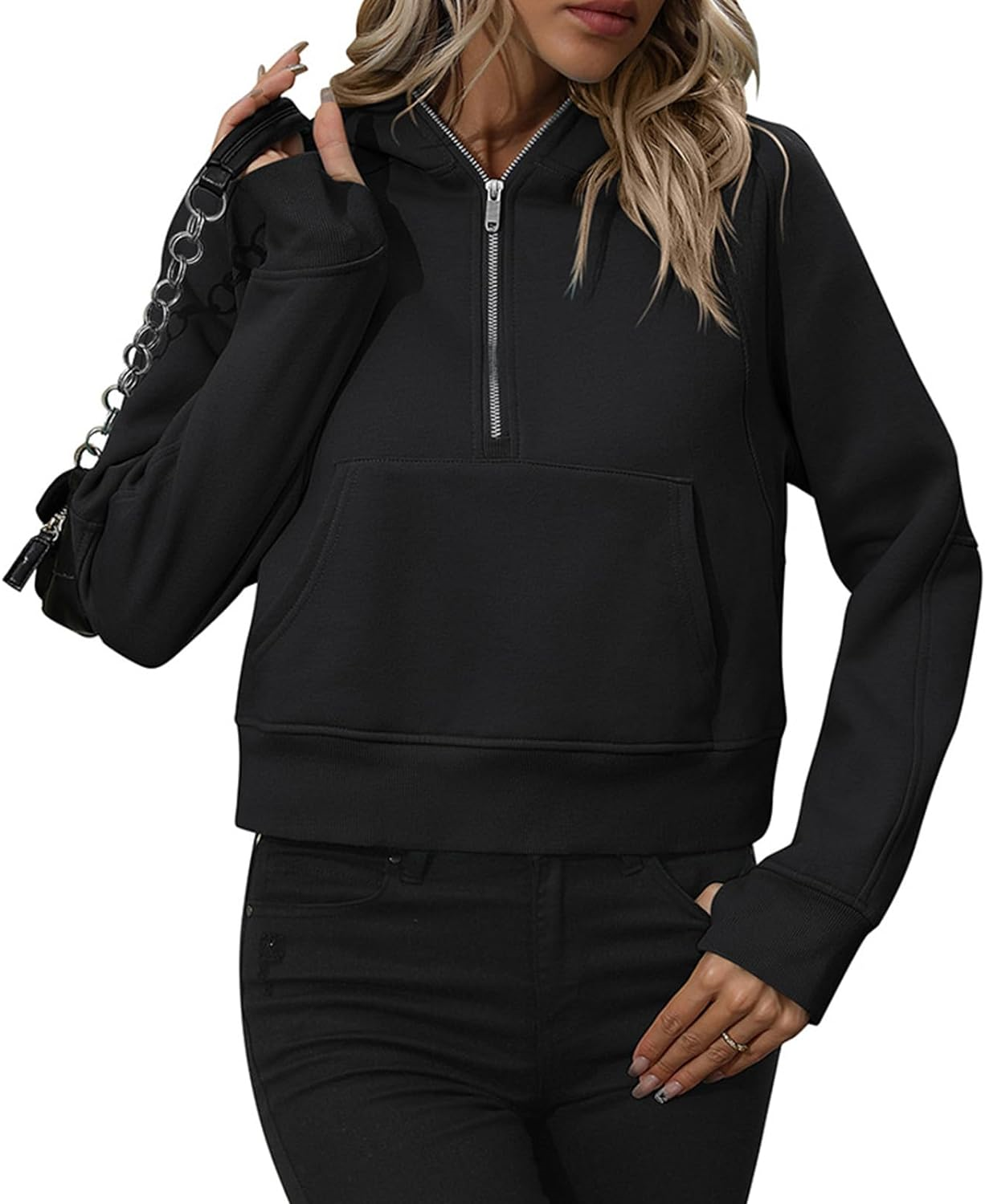 Fashion women's top with quarter zipper and collar design, the zipper length is about a quarter of the full zipper, easy to adjust the width of the collar.